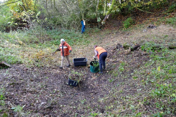 Doch nun naht Hilfe! Einige LBV-Mitglieder nämlich Barbara, Carmen, Gerhard, Martin und Norbert möchten den Kammmolch zum Hochzeitfeiern zusammen mit andere Teichbewohnern gerne wieder begrüßen