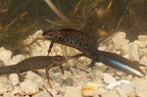 Kammmolche und mit ca. 18 cm Länge unsere größte einheimische Molch Art. Sie lieben dauerhaft wasserführende Weiher oder Gewässer und hatten lange Zeit ein gutes Auskommen in einem kleinen Teich.