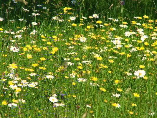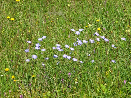Für nichtspezialisierte Insekten bietet diese Wiese sowieso ein dauerhaftes Angebot an Pollen und Nektar.