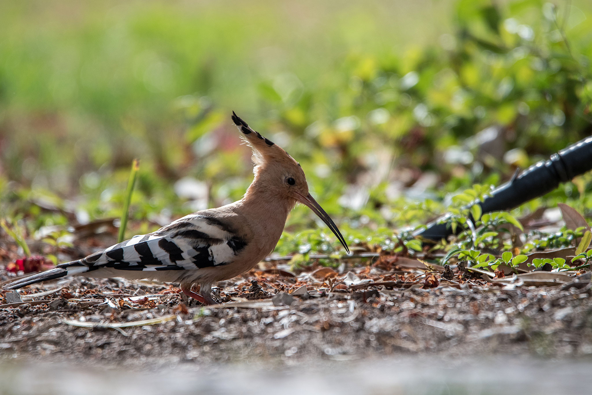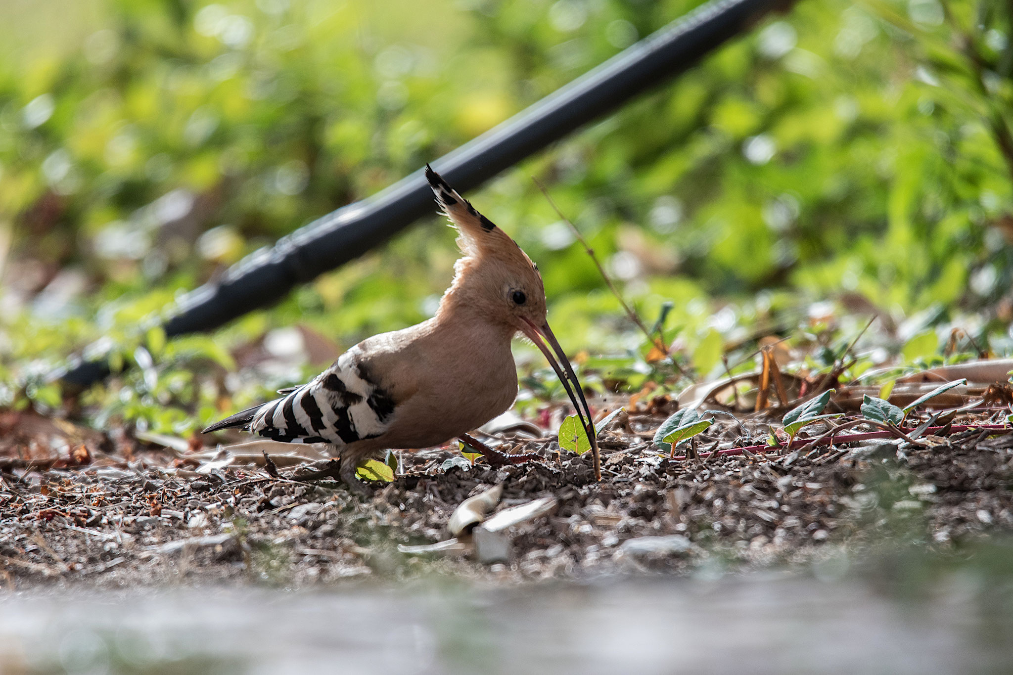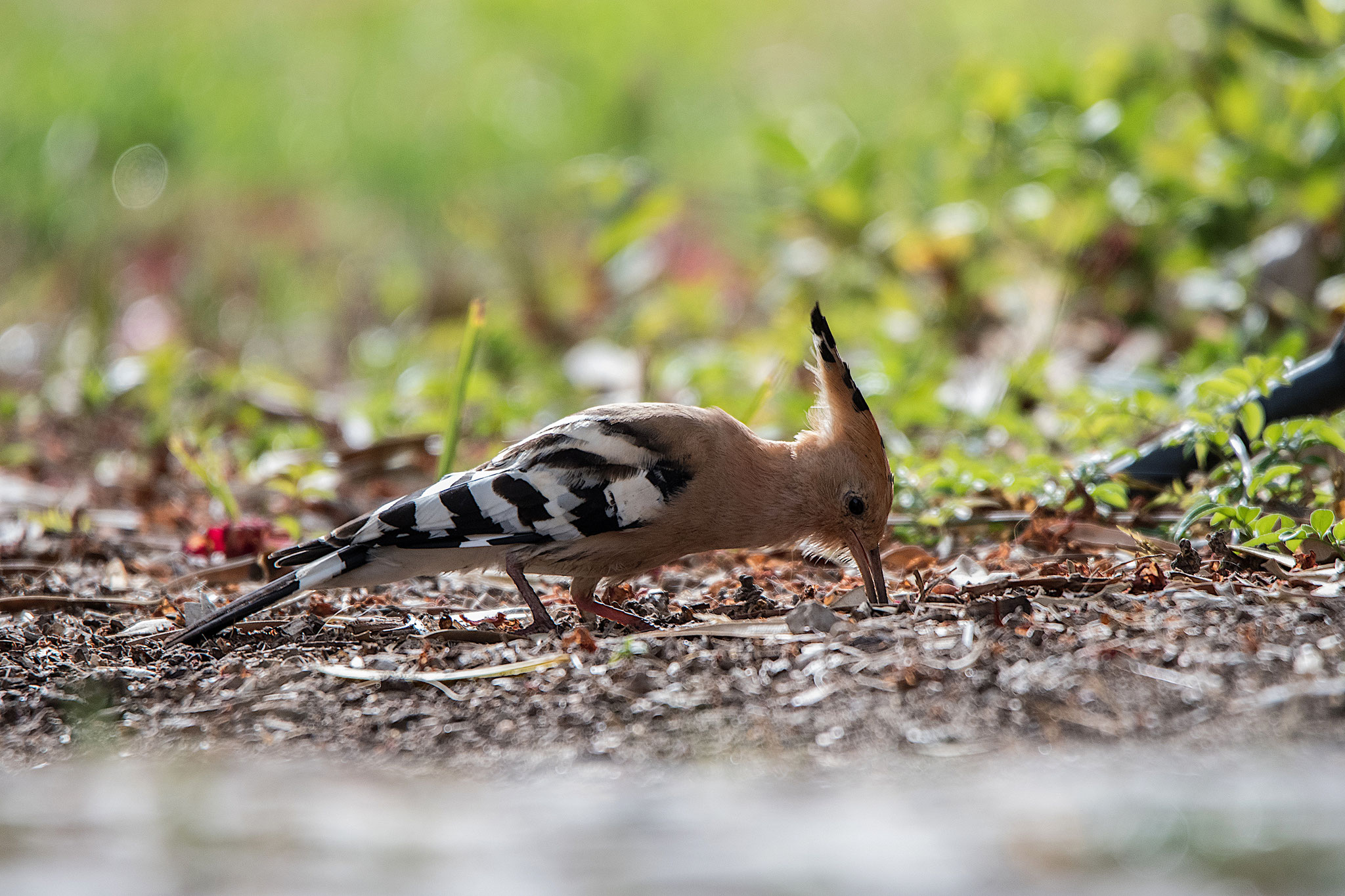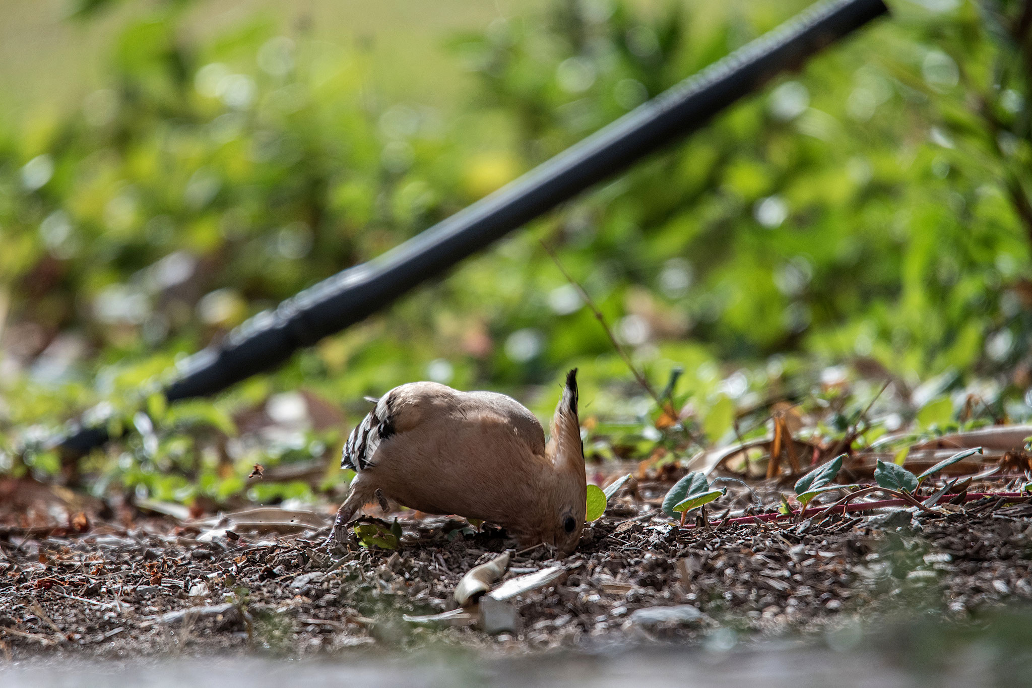 Plötzlich tauchte ganz unverhofft ein Wiedehopf auf. Er hob sich mit seiner Tarnfärbung kaum vom gleichfarbigen Untergrund ab. Er lief hin und her, schob immer wieder mal den Schnabel