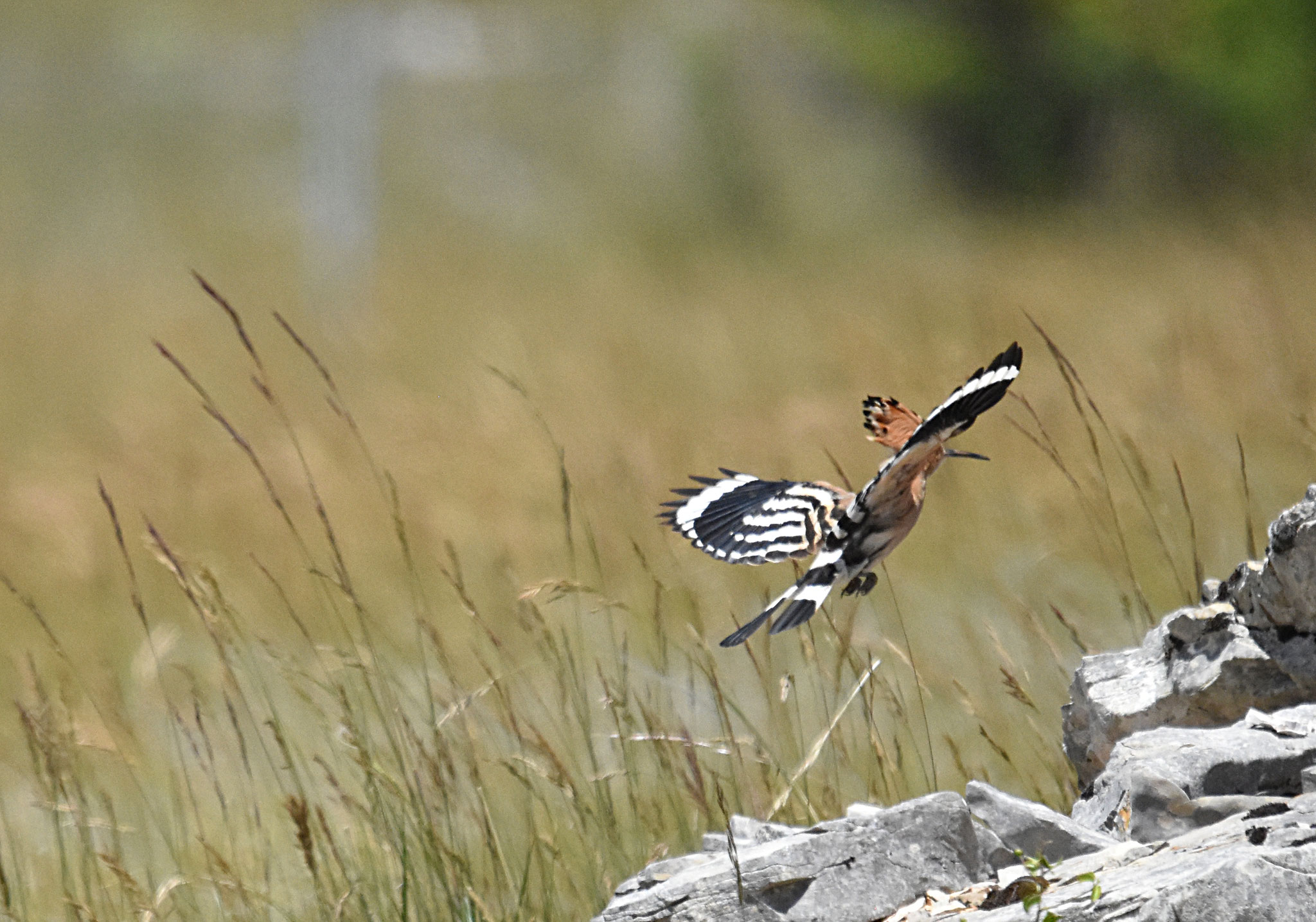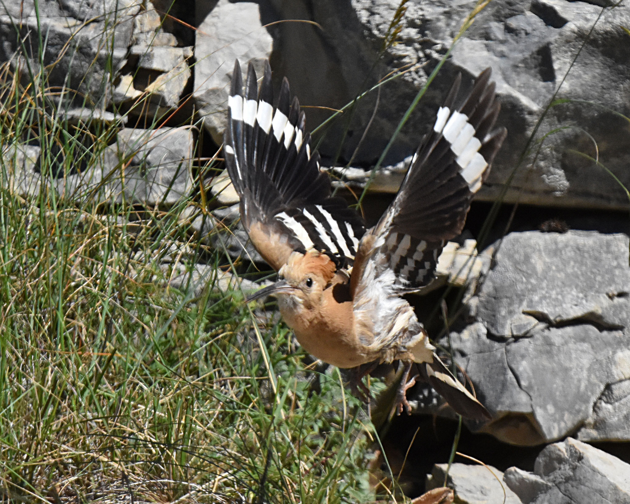 Das war das erste Mal in den Cevennen auf dem Causse Méjean. Eigentlich sieht man einen Wiedehopf ja immer zu spät, denn sein Federkleid tarnt ihn am Boden bestens. Erst wenn er auffliegt,